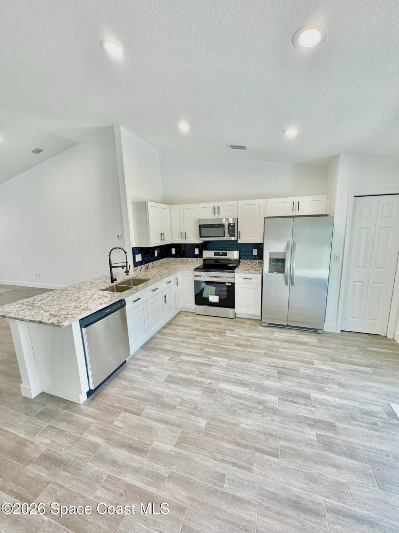 Look!!! Just finishing NEW city water home in SE Palm Bay on a corner lot and cul-de-sac . This 3-bed, 2-bath home spans 2332 square feet featuring real plank tile throughout the entire home as well as all impact windows and doors-no need for shutters, well insulated to improve low energy cost, also with the Lennox High efficiency air conditioning system that has been proven for low monthly bills. There is room for a swimming pool in the large back yard and extra parking for RV on the property, if desired. Kitchen and bathrooms with high level granite counter tops. Extras galore - can lighting in every room, closet, pantry, ceiling fans in each room, and exterior soffit lighting. The open concept is perfect for entertaining. The kitchen has oversized sinks with a breakfast bar. The primary suite with an en-suite bathroom, dual sinks, separate shower and Large walk-in closet, complete gutters, Latest ATU septic system includes 2 yr maint. So much more value than other homes! No HOA! Close to schools, shopping centers, and I95 within minutes. This is a must-see home. More photos coming soon. Brand new just finishing up True Custom Home with an abundance of upgrades! This 3 Bedroom 2 Bath home thoughtfully laid out open plan with huge rooms. No wasted spaces here. Great room is 26 x 17., a room the size you would see in a much larger home! Kitchen with island and granite counters. Large outdoor covered porch for great entertaining or family hangout plumbed for outdoor kitchen. IMPACT windows and doors. Highly efficient, FOAM INSULATION throughout home and high efficiency Lenox air condtioner! Wood plank style REAL porcelain wood plank style Tile throughout the entire home! Extra outlets and cat 5 to each bedroom, underground electric service. Recessed LED lighting throughout home. Even under-counter lighting!So much more! Great value! 3 Function plumbing in master with handheld shower. Close to schools, shopping centers, and I95 and Beach within minutes. Also, close proximity to Orlando and all the world class entertainment and dining! NOT a tract home! Everything is over and above standard codes for security and efficiency! A must-see home! It will not last long at this price!